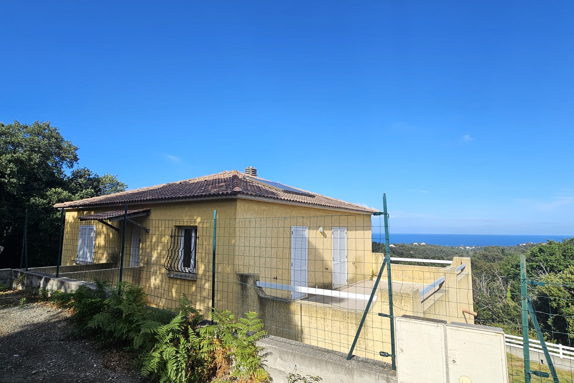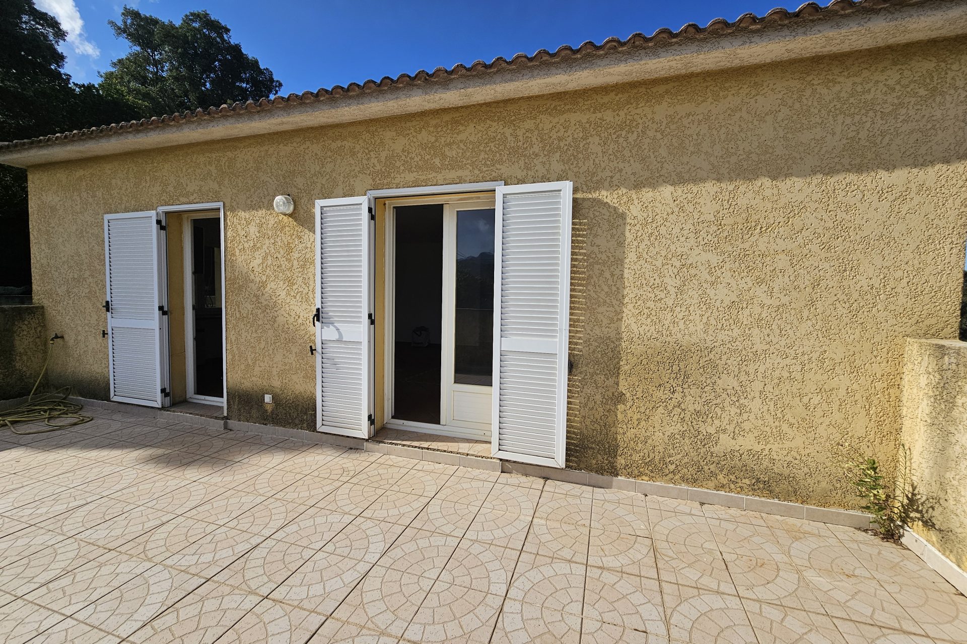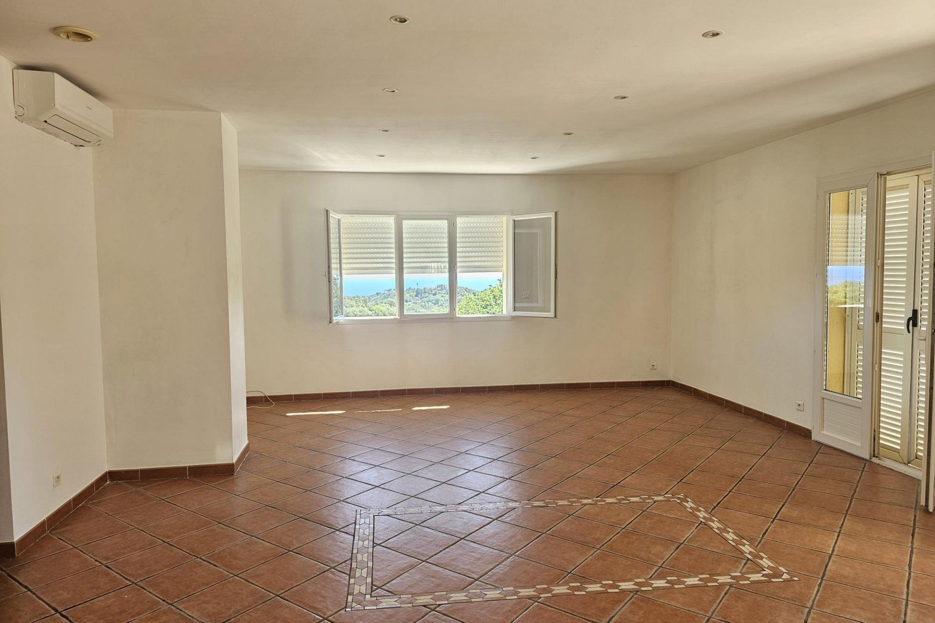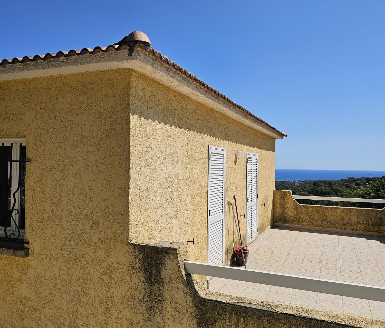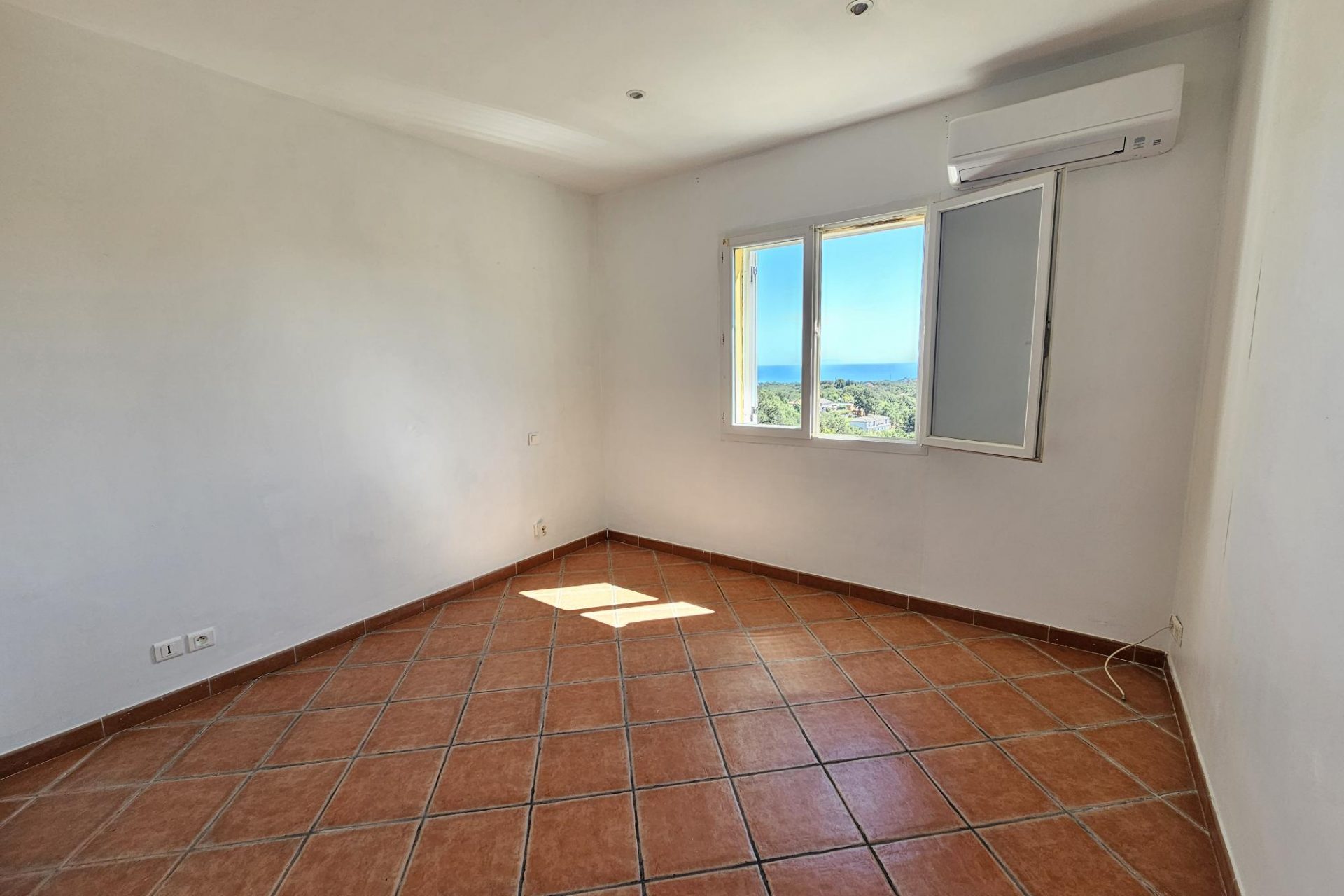 Haut de villa, appartement de type T3, composé d’un séjour-salon cuisine ouverte, partiellement aménagée, donnant sur une belle terrasse de 32 m² avec vue sur la mer, de deux chambres et d’une salle d’eau avec WC.