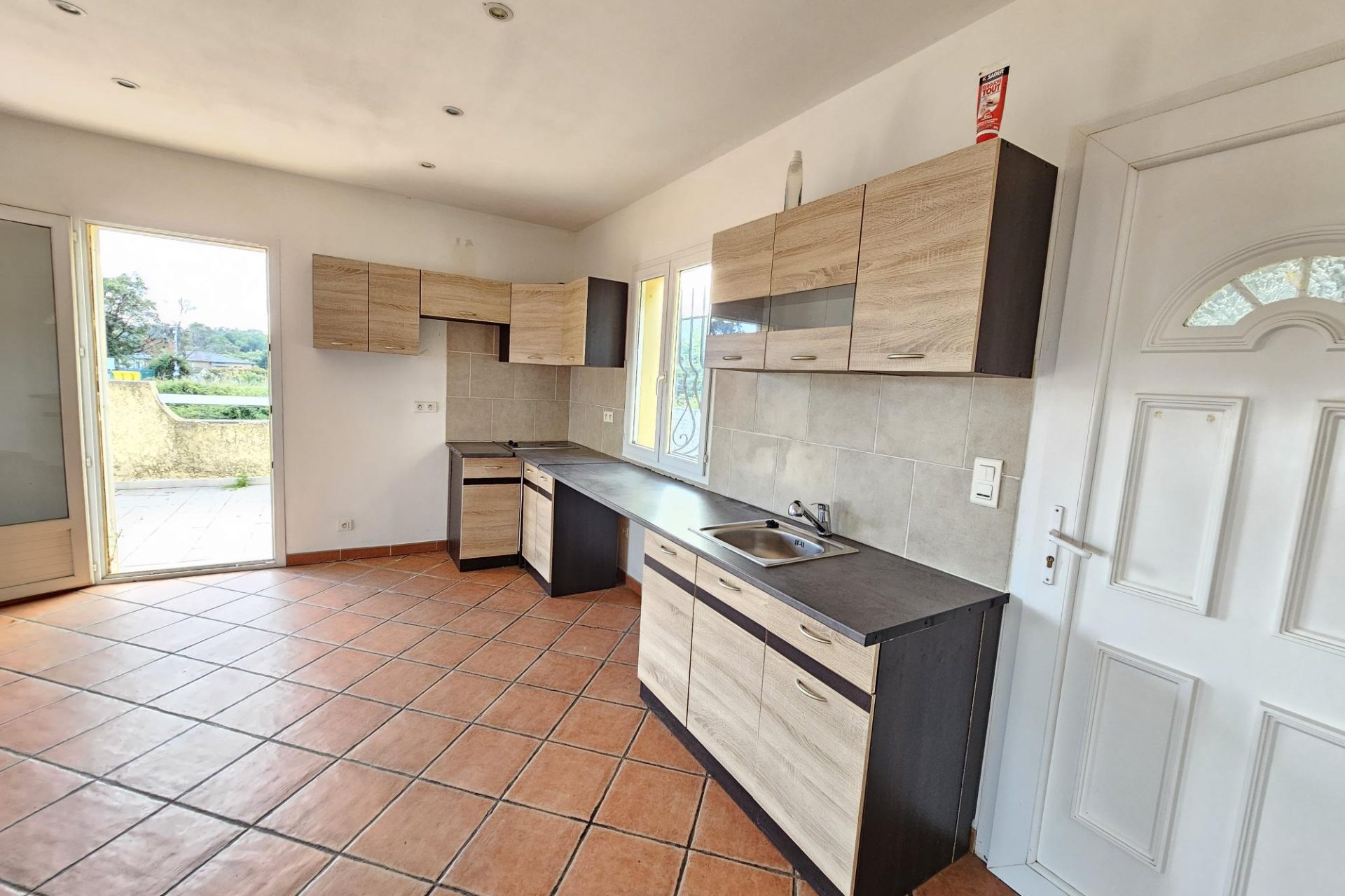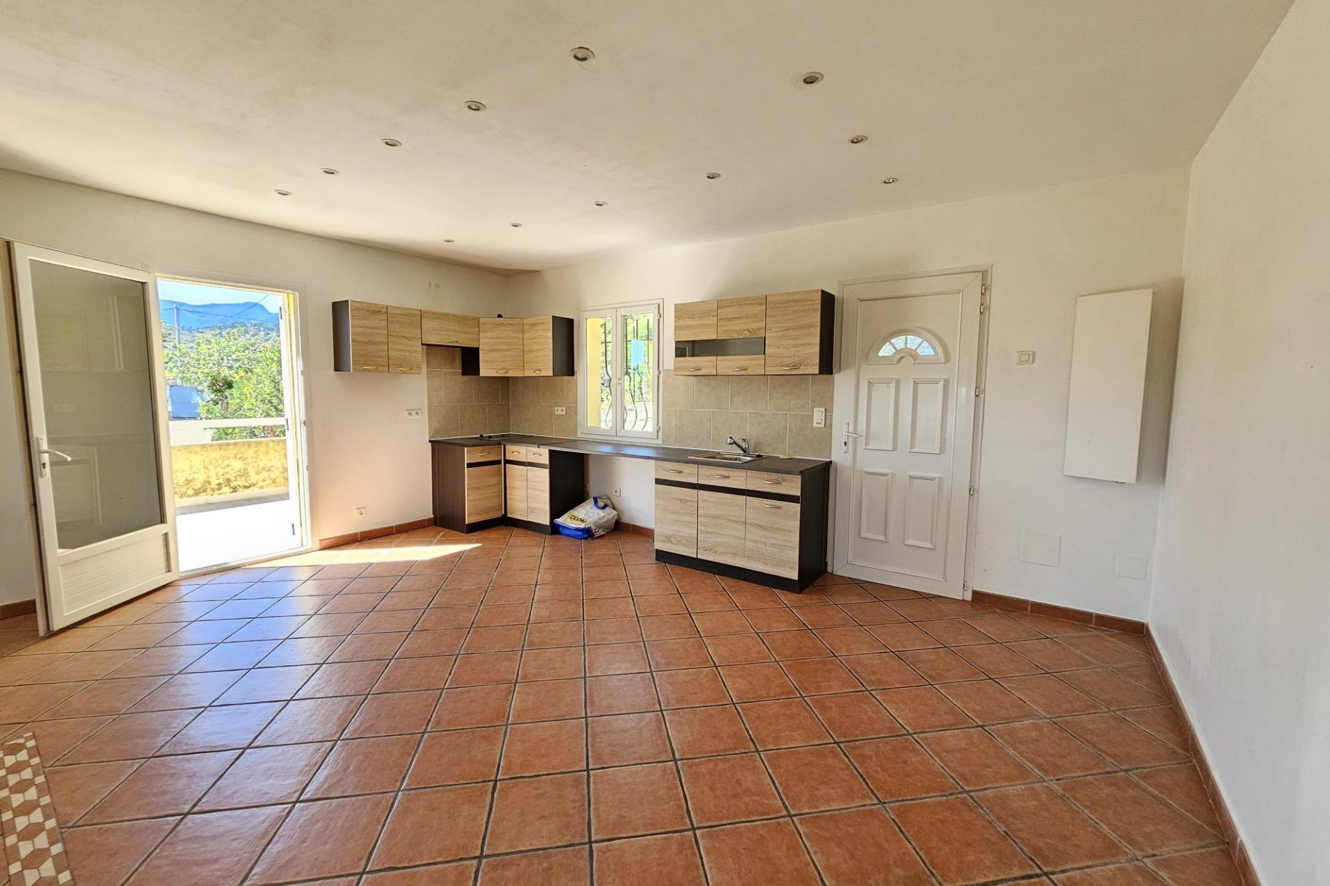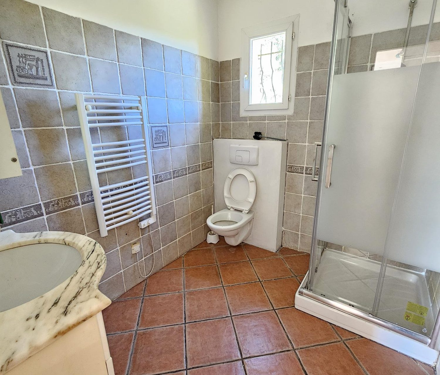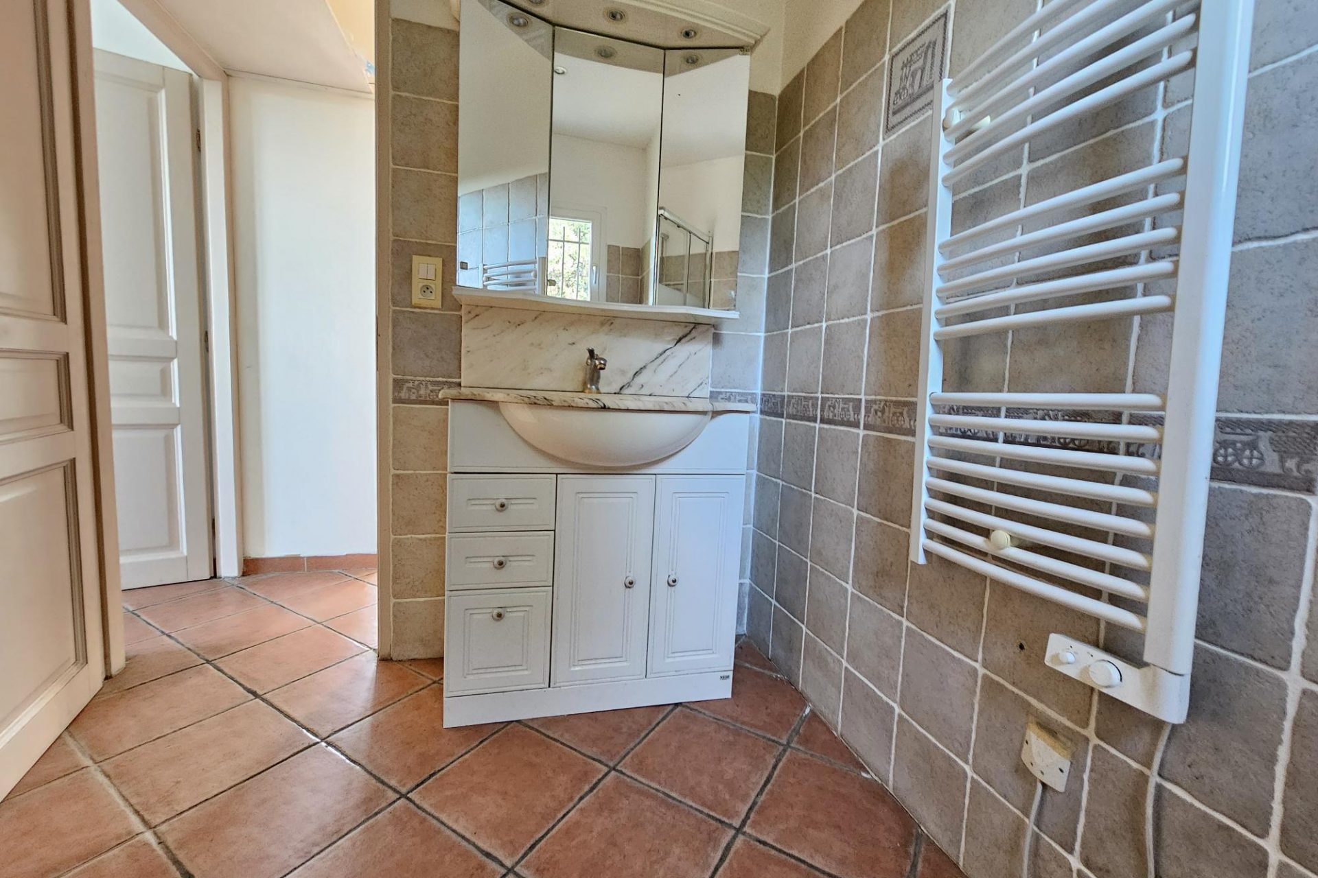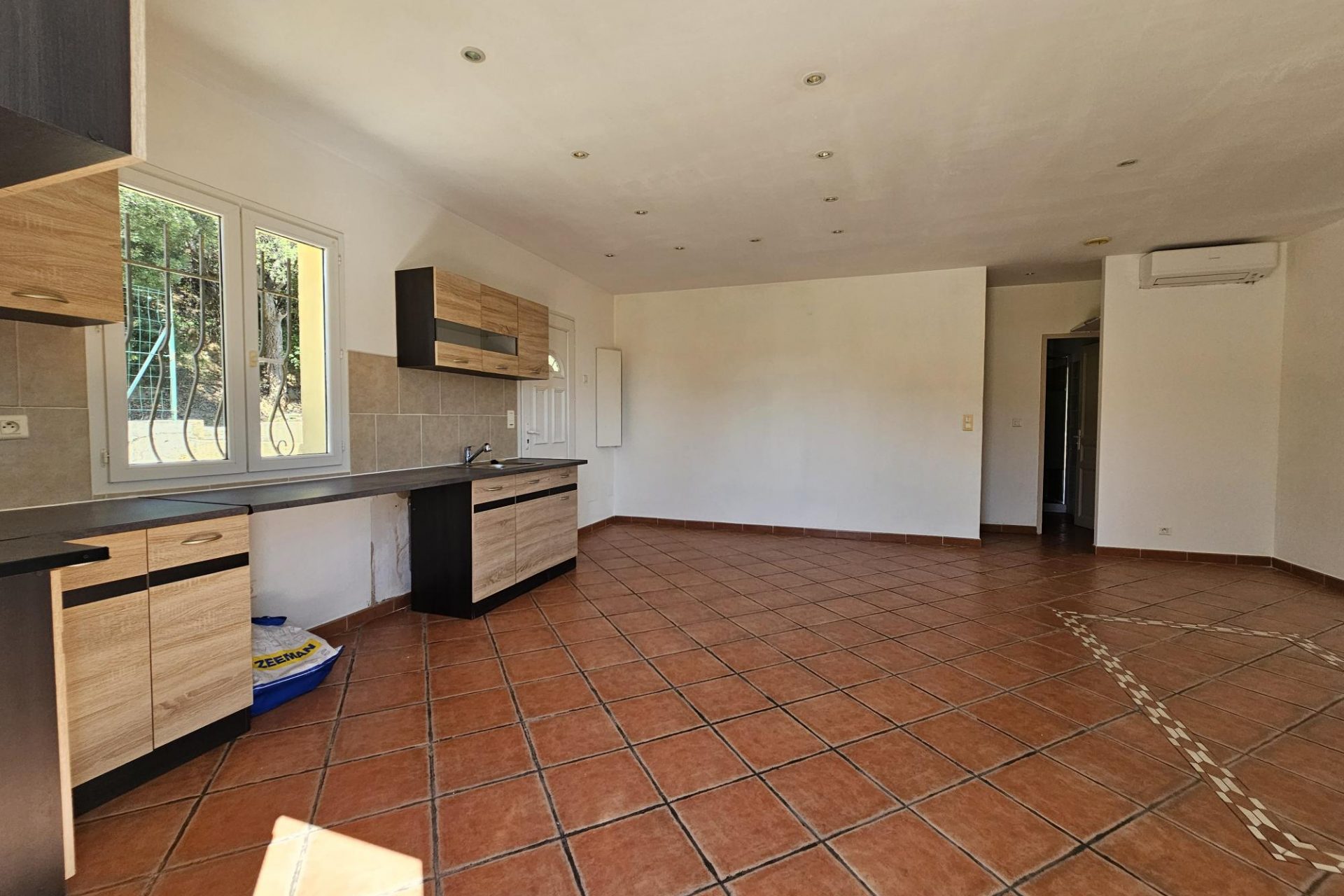 Haut de villa, appartement de type T3, composé d’un séjour-salon cuisine ouverte, partiellement aménagée, donnant sur une belle terrasse de 32 m² avec vue sur la mer, de deux chambres et d’une salle d’eau avec WC.