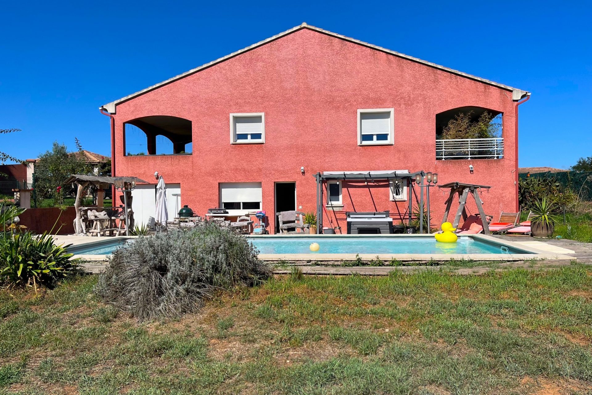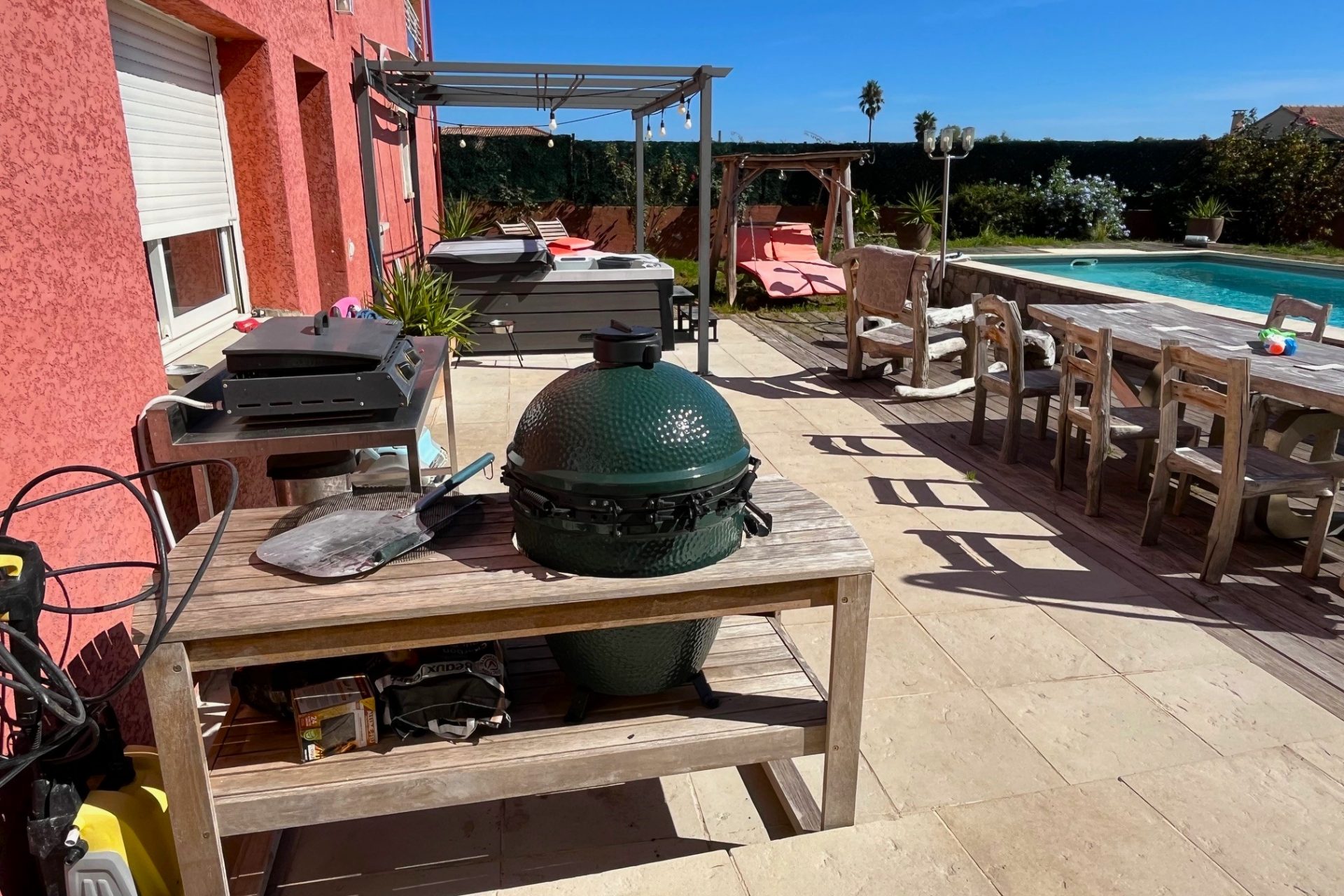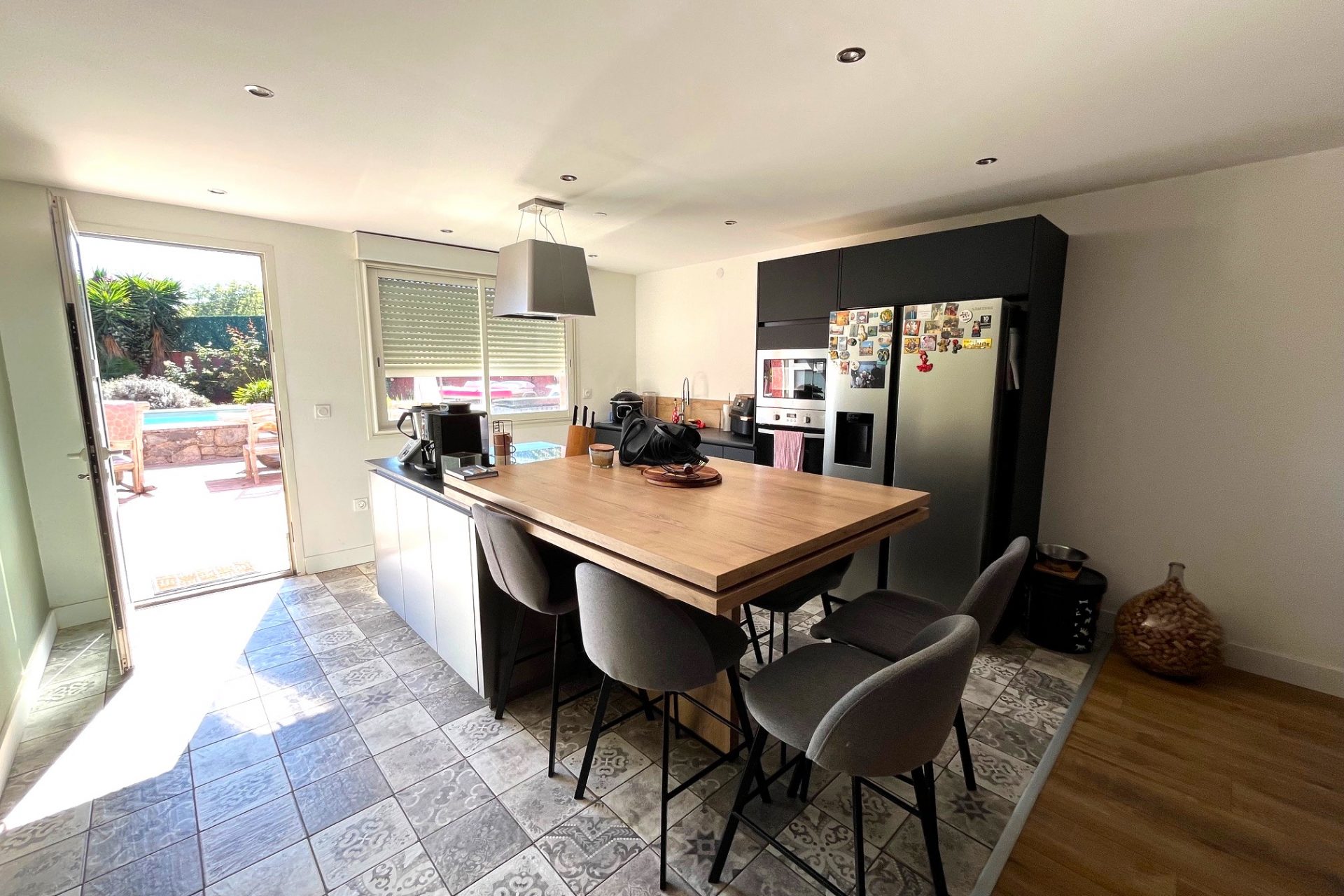 A VENDRE dans un environnement pavillonnaire belle maison de deux logements indépendants sur 1 098m² de terrain cloturé, arboré, pelousé avec piscine de 9×4. Dans un secteur au calme non loin des commerces et à 400m de la plage.