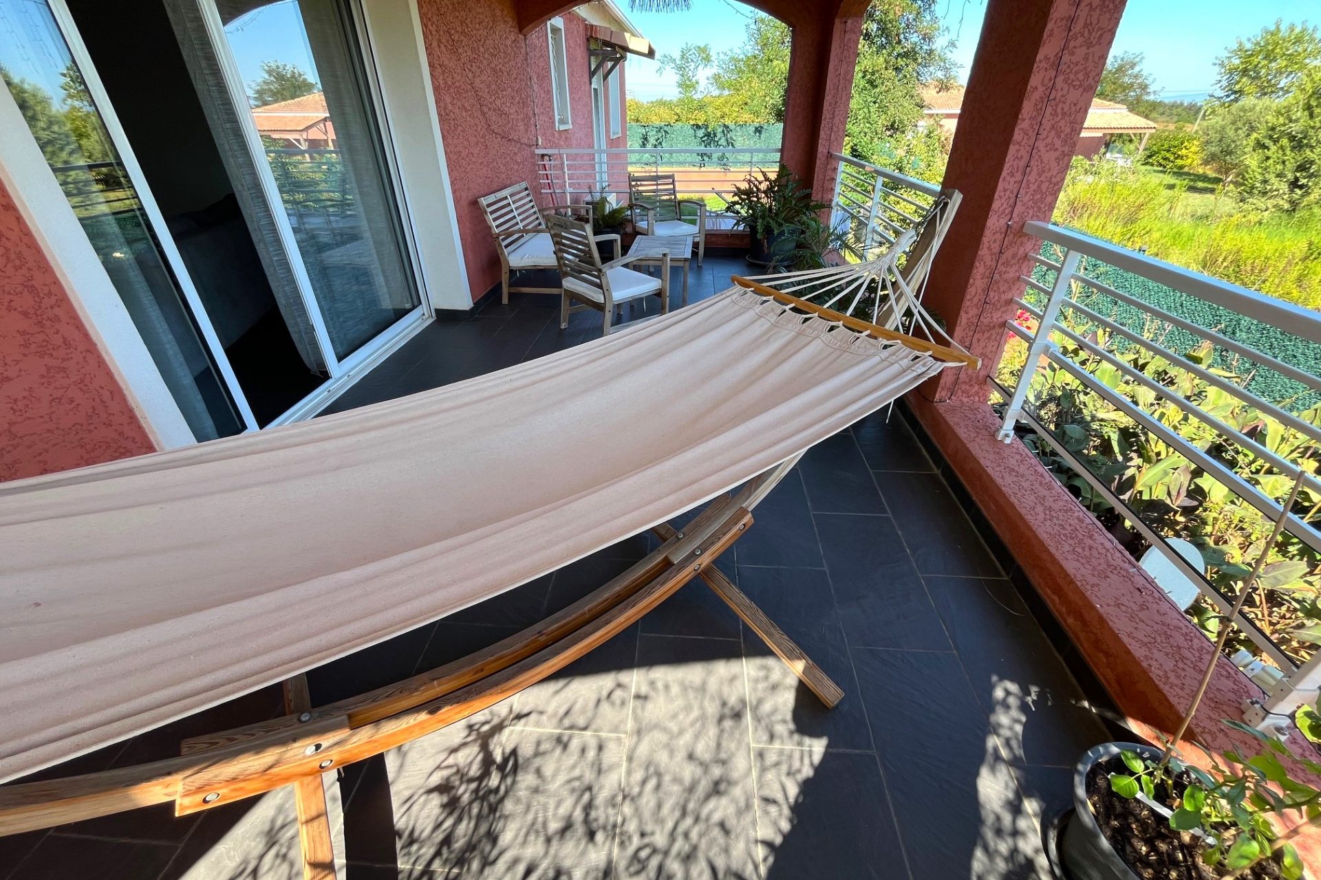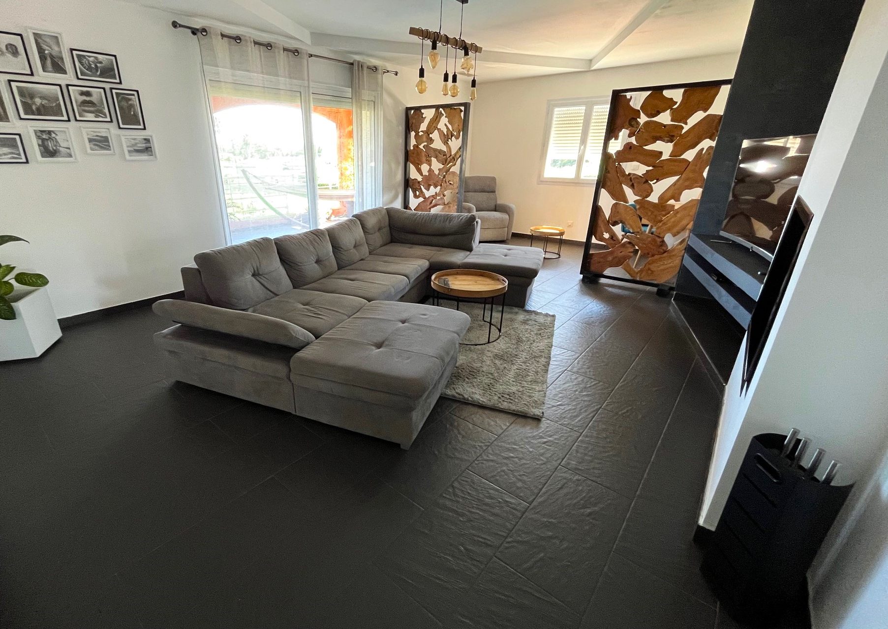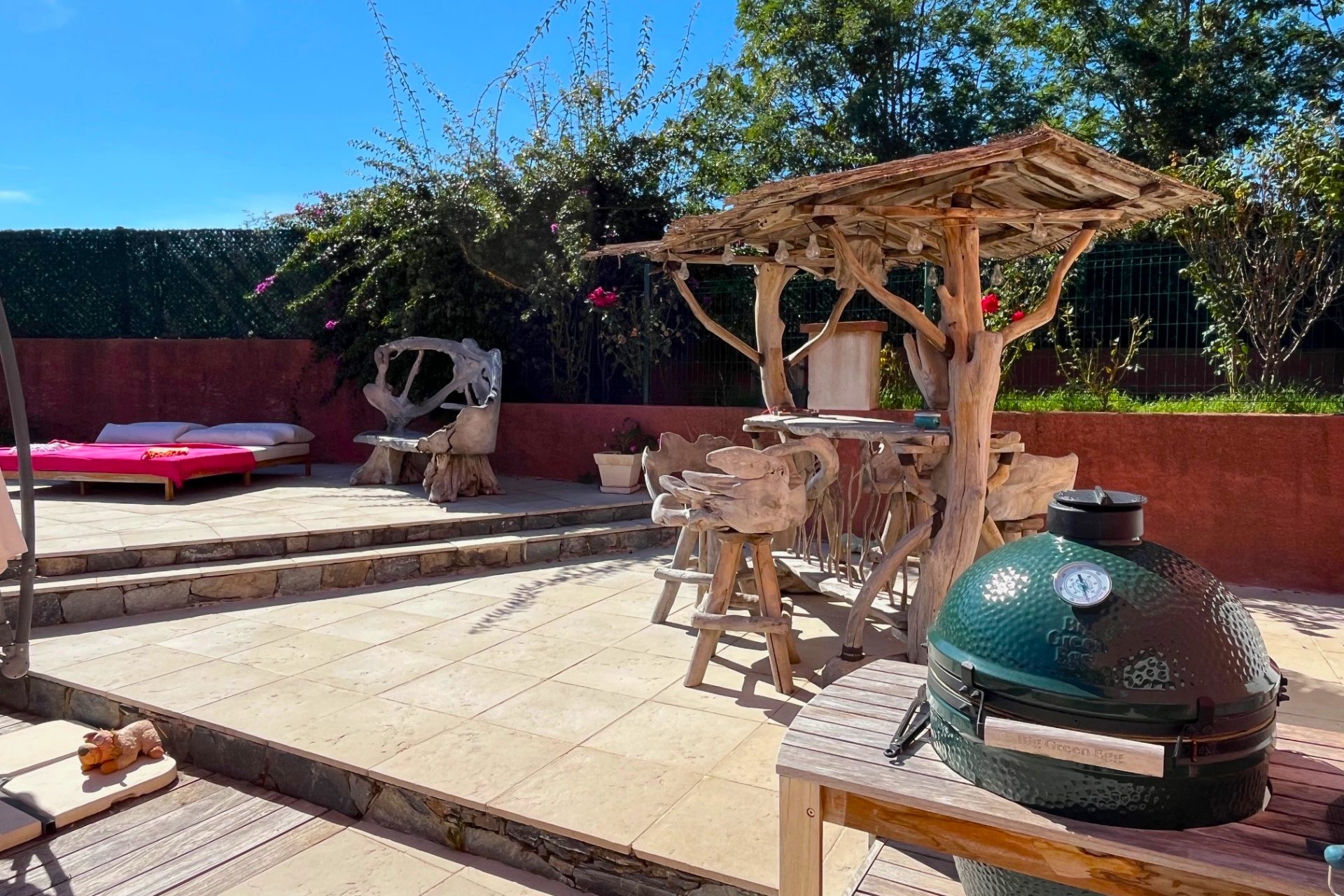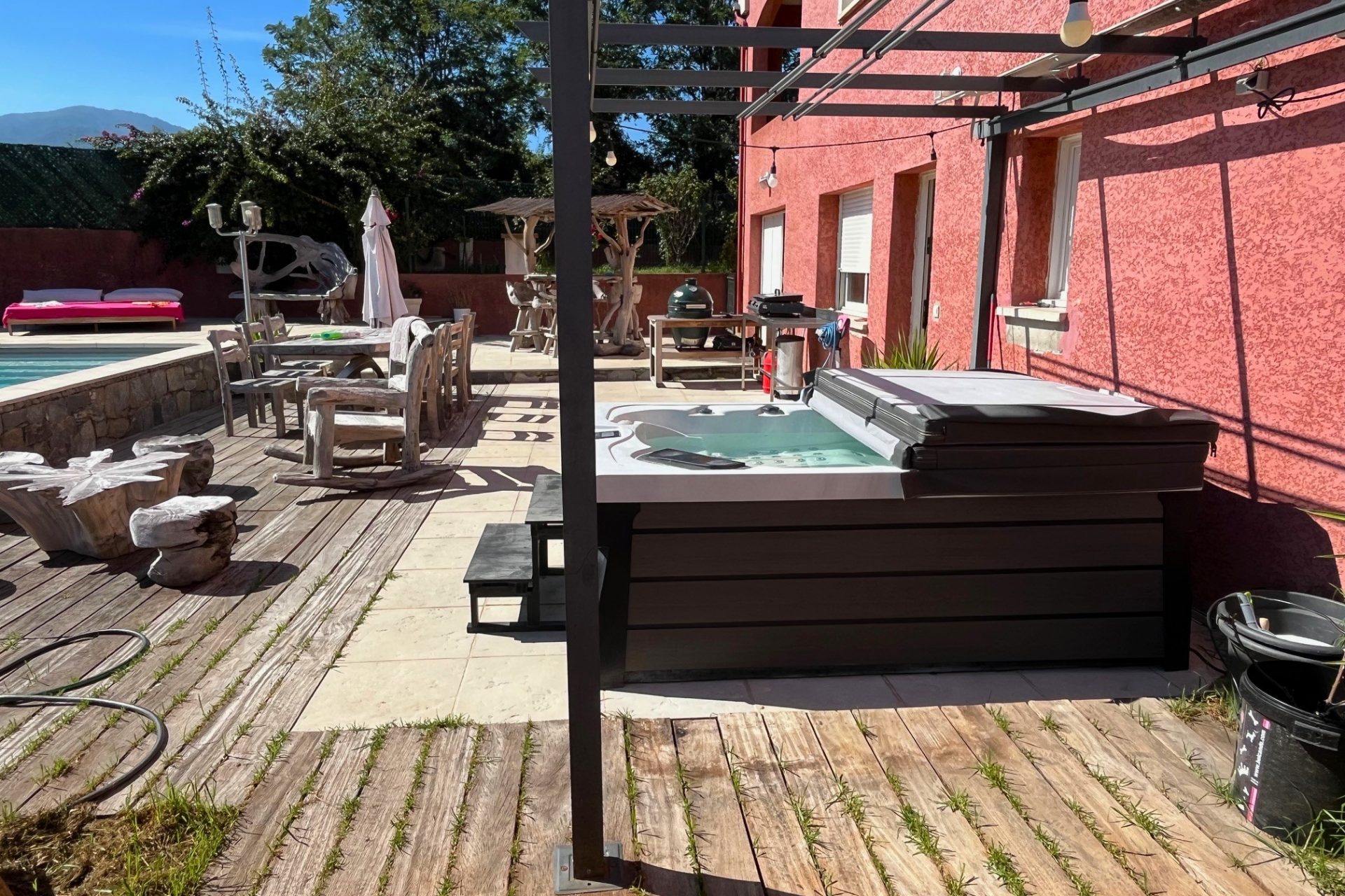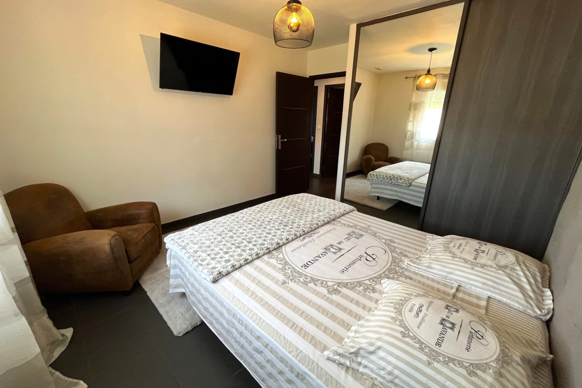 – L’appartement du rez-de-chaussez d’une surface de 80m² face à la piscine; comprend deux chambres, un dressing, un séjour salon avec cuisine équipée, une salle d’eau avec douche/baignoir et wc. Une grande terrasse avec son espace jacuzzi, piscine, barbecue….