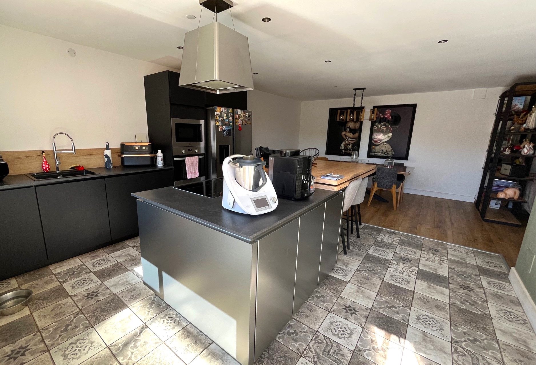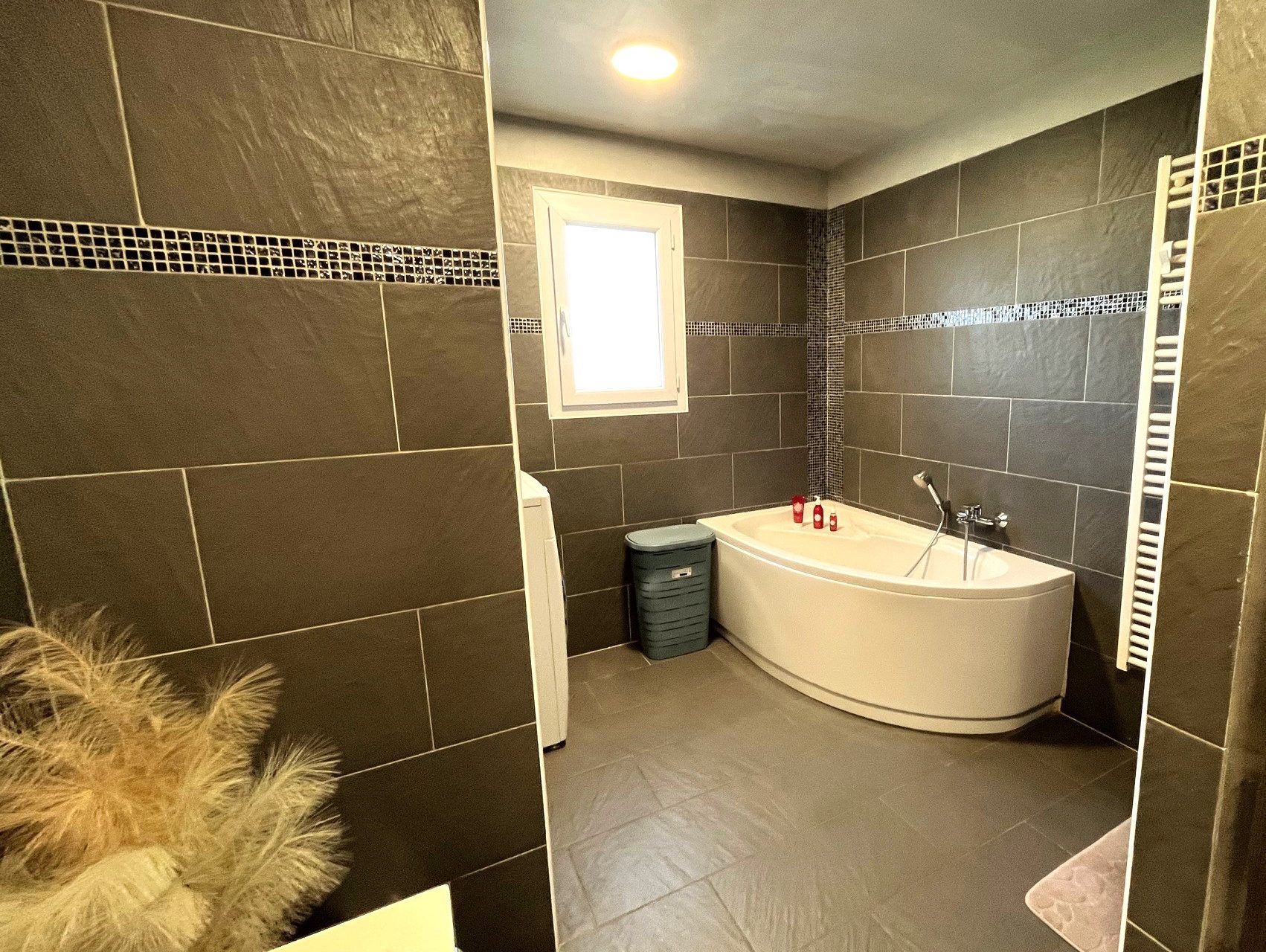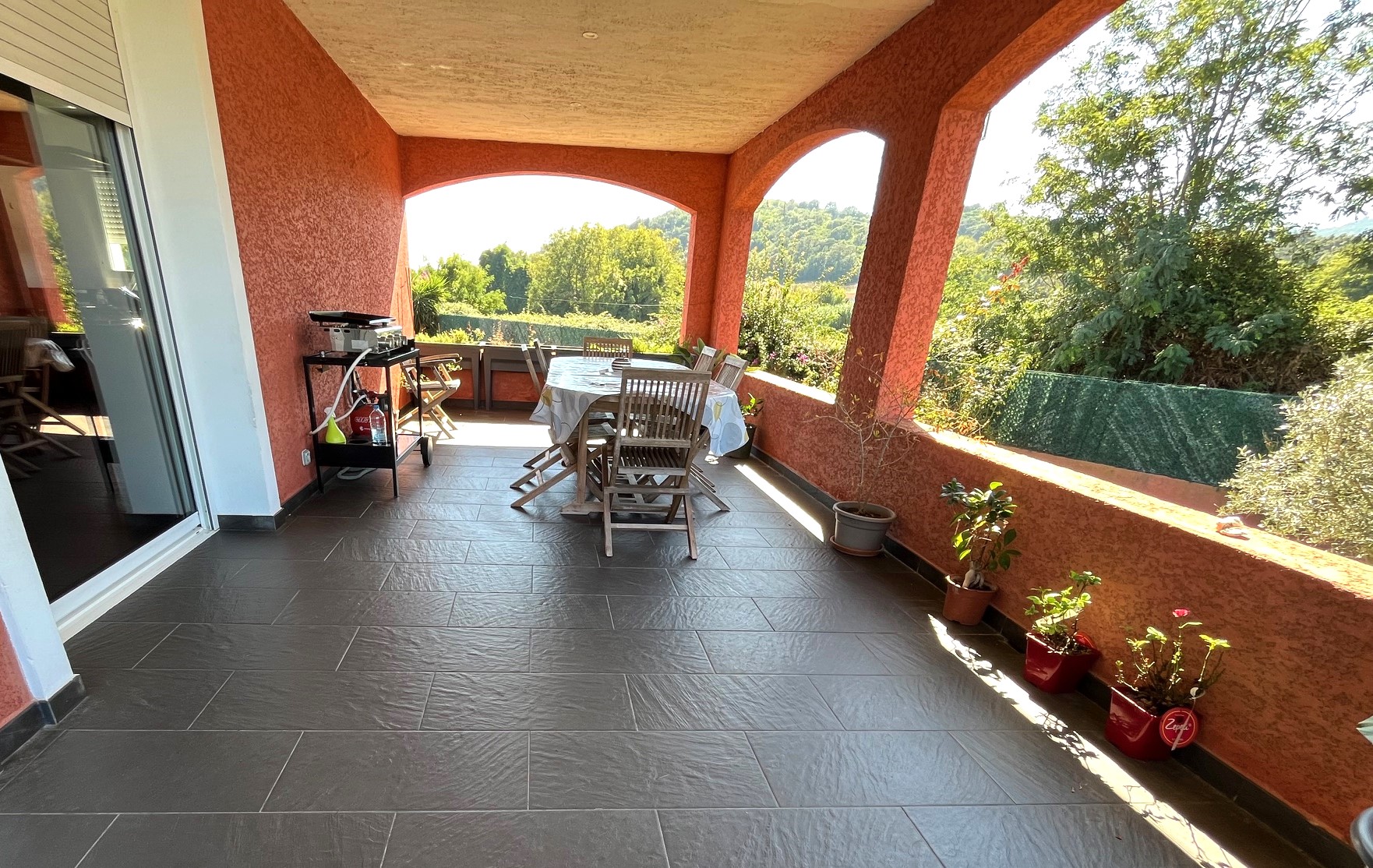 – A l’étage un appartement de 130m², composé d’un hall d’entrée, une cuisine équipée avec une salle à manger donnant sur une terrasse ; un salon avec cheminée, un coin bureau, une terrasse avec vue, 3 chambres, un wc séparé et une salle d’eau avec douche/baignoir et wc.