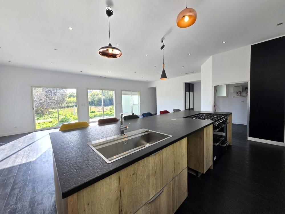 Maison lumineuse et bien agencée, avec son séjour cuisine d’une superficie de 63m² s’ouvrant sur l’exterieur, un cellier, une entrée avec placard ; côté nuit une chambre avec dressing, 2 autres chambres équipées de placards; les chambres sont reliées entre elles par une piéce arrière, parfaite pour une pièce de jeux ou un espace bureau; une salle de bain WC ainsi qu’un wc lave-main séparé.