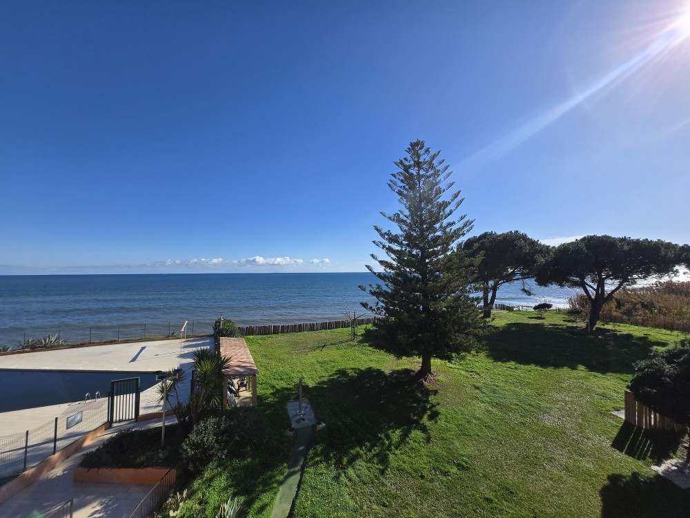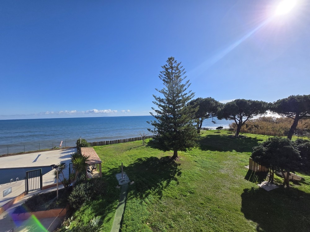 Situé à Santa Lucia di Moriani, studio de 26.70 m² avec terrasse face mer de 6.52 m² se trouve au 3ᵉ étage avec ascenseur d’une résidence sécurisée les pieds dans l’eau, bénéficiant d’une belle piscine et d’un vaste parc paysager.