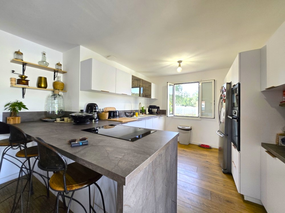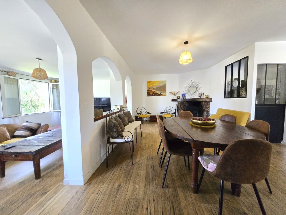 À l’intérieur, le parquet confère une ambiance chaleureuse, tandis que la cuisine moderne et fonctionnelle s’ouvre sur un séjour lumineux avec cheminée, idéal pour vos moments en famille ou entre amis. L’espace extérieur, pensé pour la détente et les repas en plein air, est piscinable et encore constructible, laissant place à toutes vos envies d’aménagement.