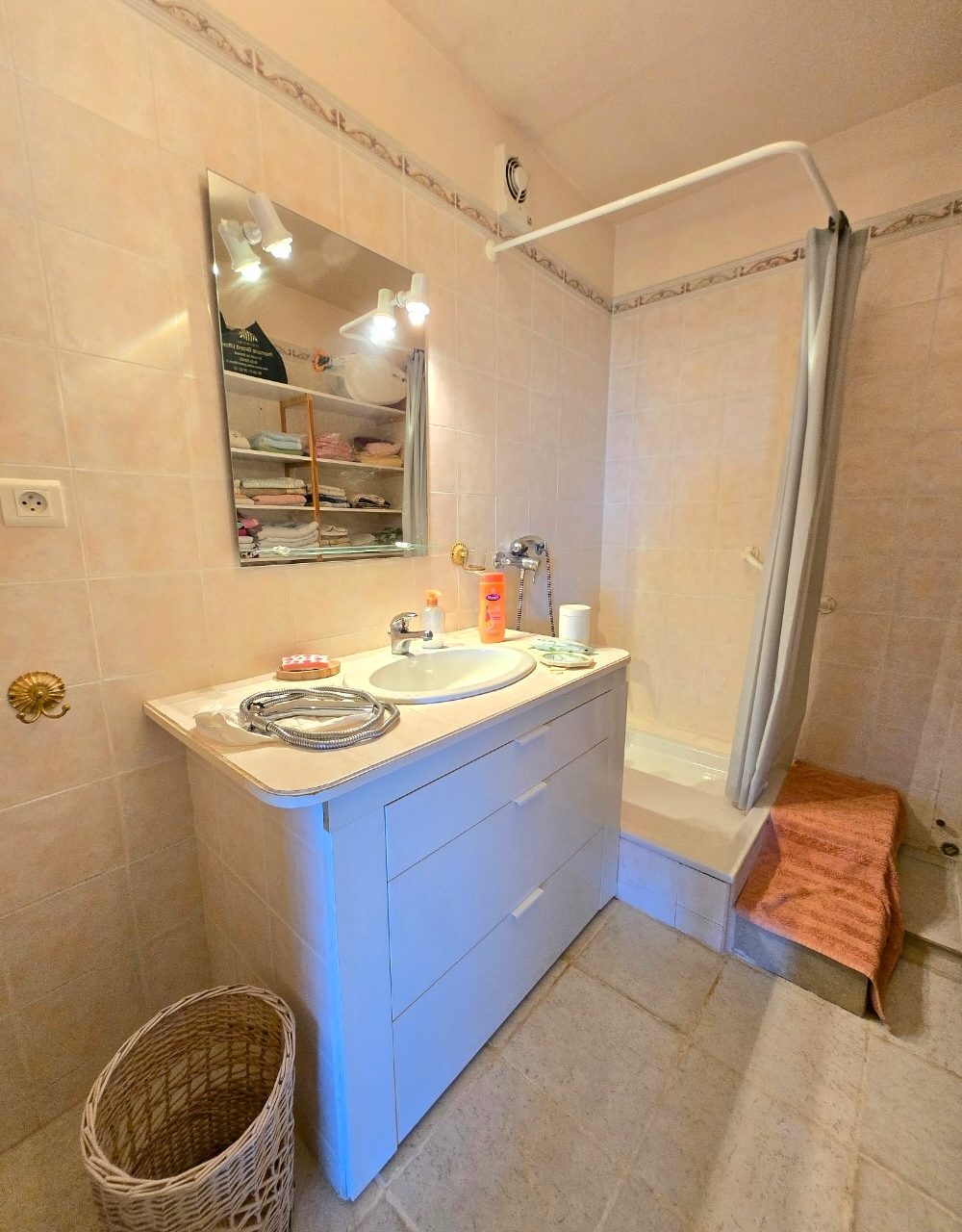 Le rez-de-jardin dispose d’un appartement indépendant de type T2 de 70 m² environ, qui se compose d’une entrée couloir, une cuisine séparée avec son accès au jardin, un salon séjour avec baie vitrée et accès au jardin, une grande chambre avec placard, une salle d’eau, un WC indépendant, le local technique de la maison avec la chaudière gaz et le cumulus électrique.
