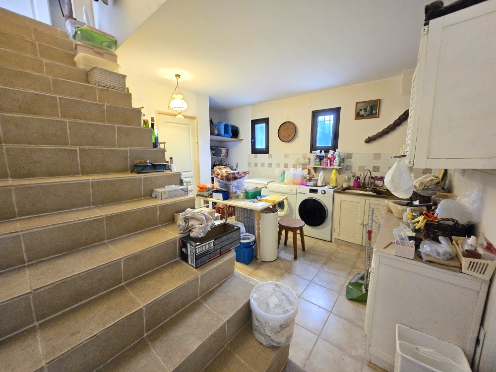 Vous disposerez également d’une buanderie, d’un atelier et d’une partie garage pouvant accueillir un véhicule. Il est possible de créer un autre appartement indépendant en lieu et place de l’atelier, de la buanderie et du garage.