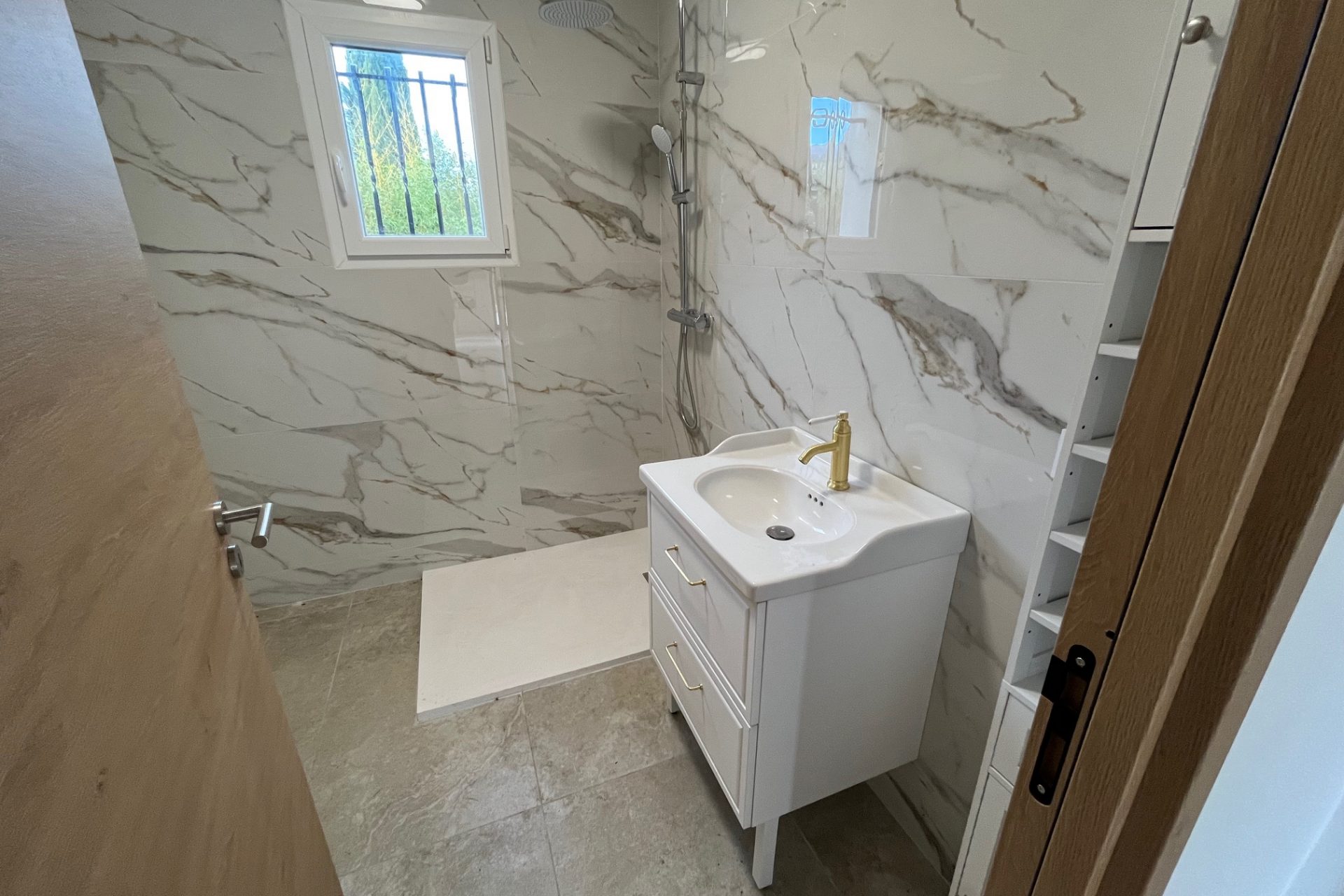 Prestations haut de gamme : climatisation réversible, menuiseries aluminium et PVC, galandage, volets roulants électriques.