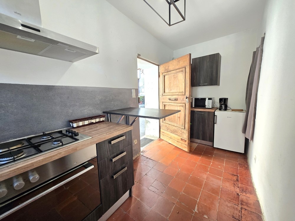Cet appartement possède tout le cachet de l’ancien : de beaux murs épais, des portes en bois double battant et des placards intégrés aux portes en bois d’origine qui lui confèrent un charme authentique et chaleureux; il est composé d’une cuisine aménagée et équipée au style moderne, un séjour salon avec cheminée, une chambre avec rangement, un dégagement une salle d’eau WC.