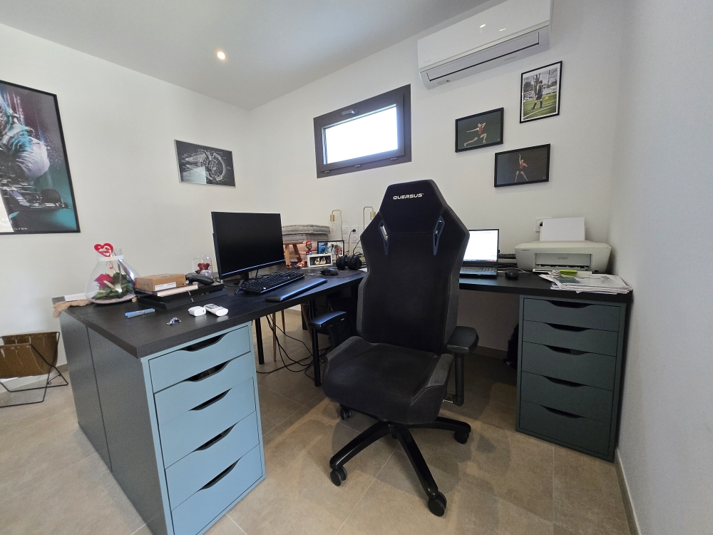 Une buanderie et un bureau complète l’aménagement intérieur de cette belle maison de plein pied. Un Atelier de 12m² pour plus de rangement extérieur, style outils ou moto, kad.