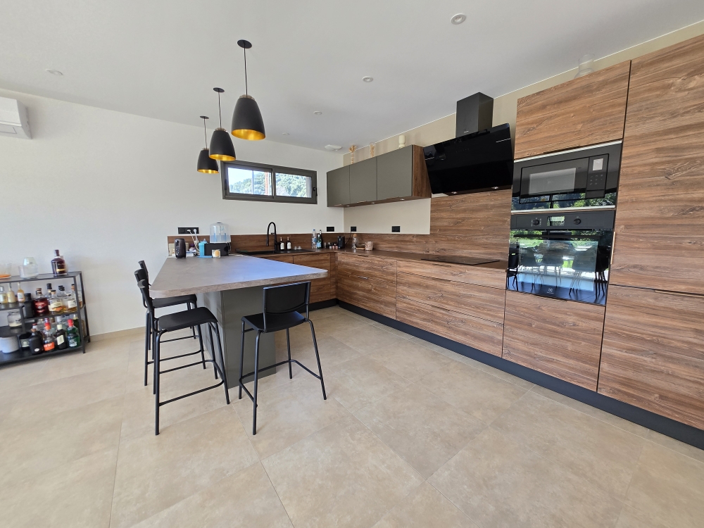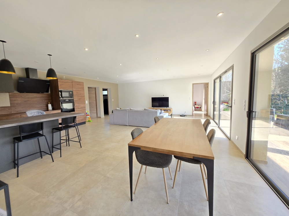 La terrasse exposée Sud/Ouest, prolonge agréablement les espaces vers le jardin. A l’extérieur, le terrain de 1 016m² offre un cadre naturel et paisible, entièrement clôturé et sécurisé par un portail électrique.